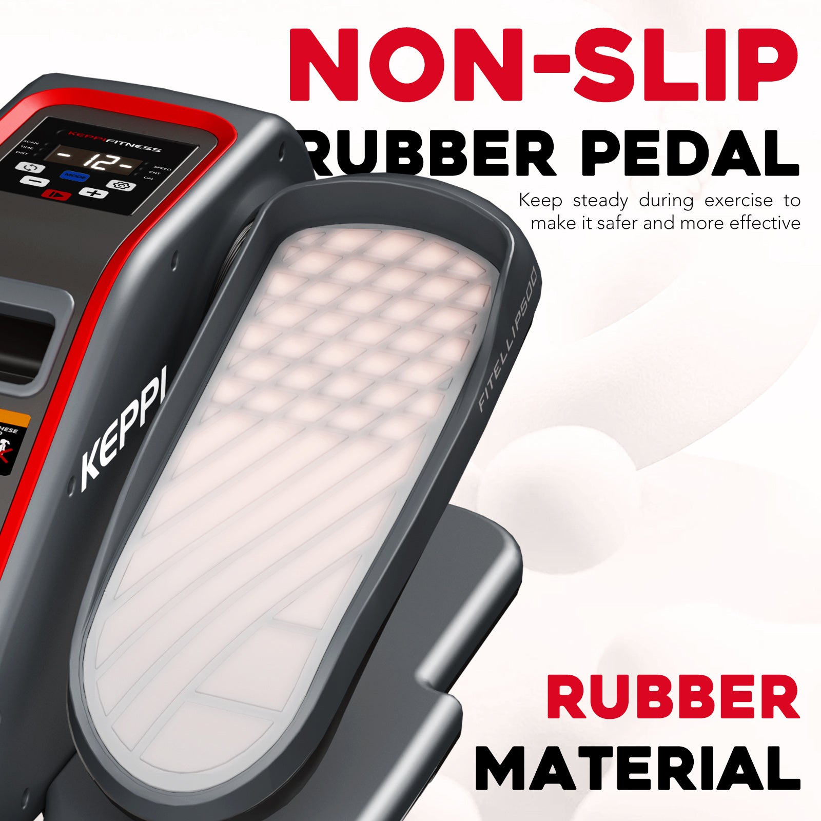 - Non-slip Pedal - The bottom of the pedals of the electric seated pedal exerciser is made of rubber, with a large area of anti-slip texture and pedal straps. The four corners of the bottom of elliptical fit with protective pads to prevent movement and ensure safety during exercise.